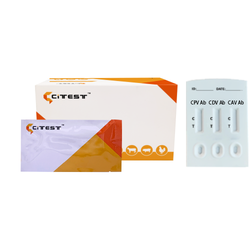 CPV+CDV+CAV Antibody Combo Rapid Test is a lateral flow immunochromatographic assay for the semi-quantitative detection of CPV+CDV+CAV Antibody in dog’s Serum/Plasma.
