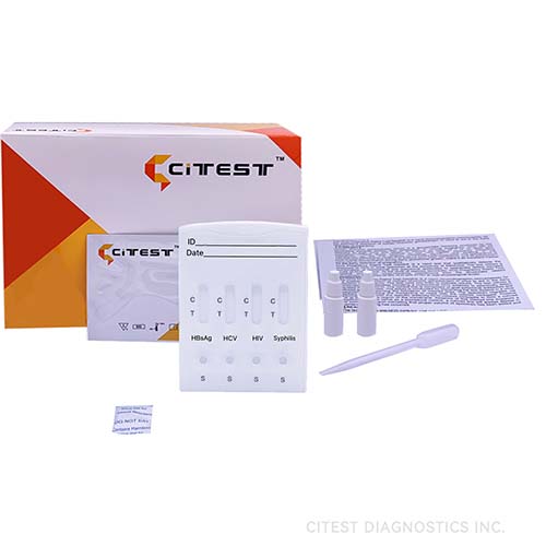 HBsAg/HCV/HIV/Syphilis Combo Rapid Test is for the qualitative detection of Hepatitis B surface antigen(HBsAg), antibodies to Hepatitis C Virus, antibodies to HIV type 1, type 2 and syphilis antibodies (IgG and IgM) to Treponema Pallidum (TP) in serum or plasma.